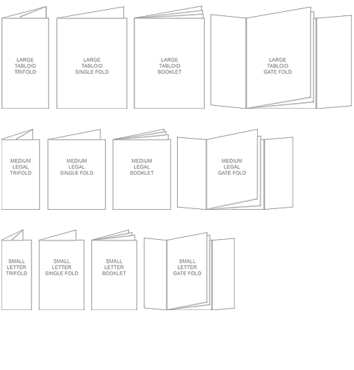 Print Formats To Choose From: Single folds creates two equal sections by folding in the center. Single folds create 4 pages for content. Trifolds creates three equal sections by folding the sides over the middle.
