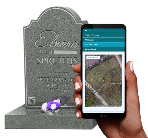 At the resting place, Quick Response code technology on the GEO Markers guide users to a web page that comes standard with information about the departed. The bereaved may also supply the original printed obituary, photos, and video, as an upgrade, to display on the Online Digital Version (ODV).