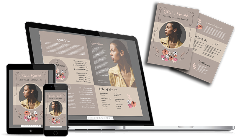 The Digital Obituaries (D-Obits) format is usually an exact replica of your program that can be viewed with internet access. The ODV has page-turning animation and sound effects to imitate the real program experience.